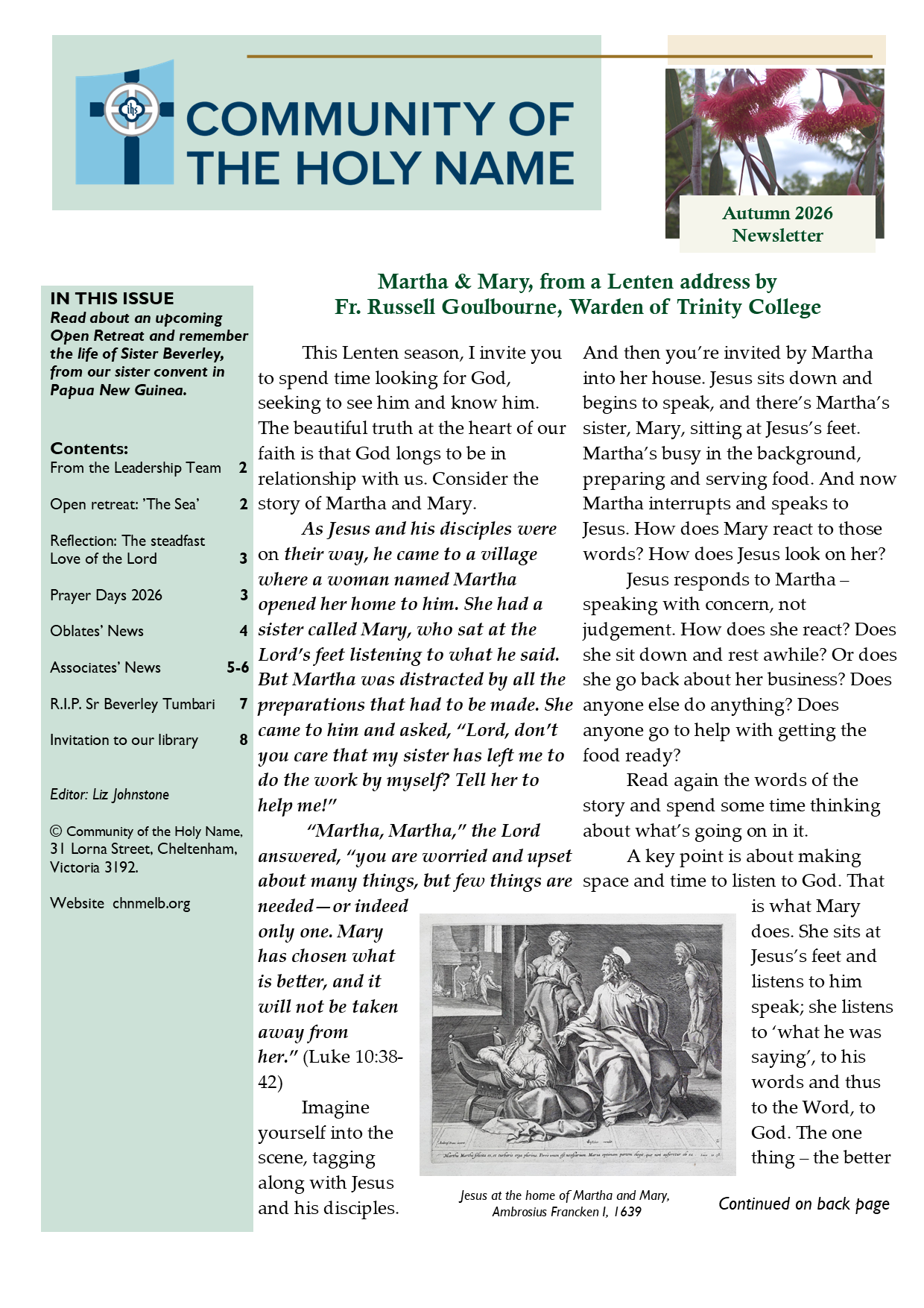 Liz Johnstone April 2, 2026 CHN Newsletter Autumn 2026 Liz Johnstone April 2, 2026 Click on image to view and/or download Newsletter.